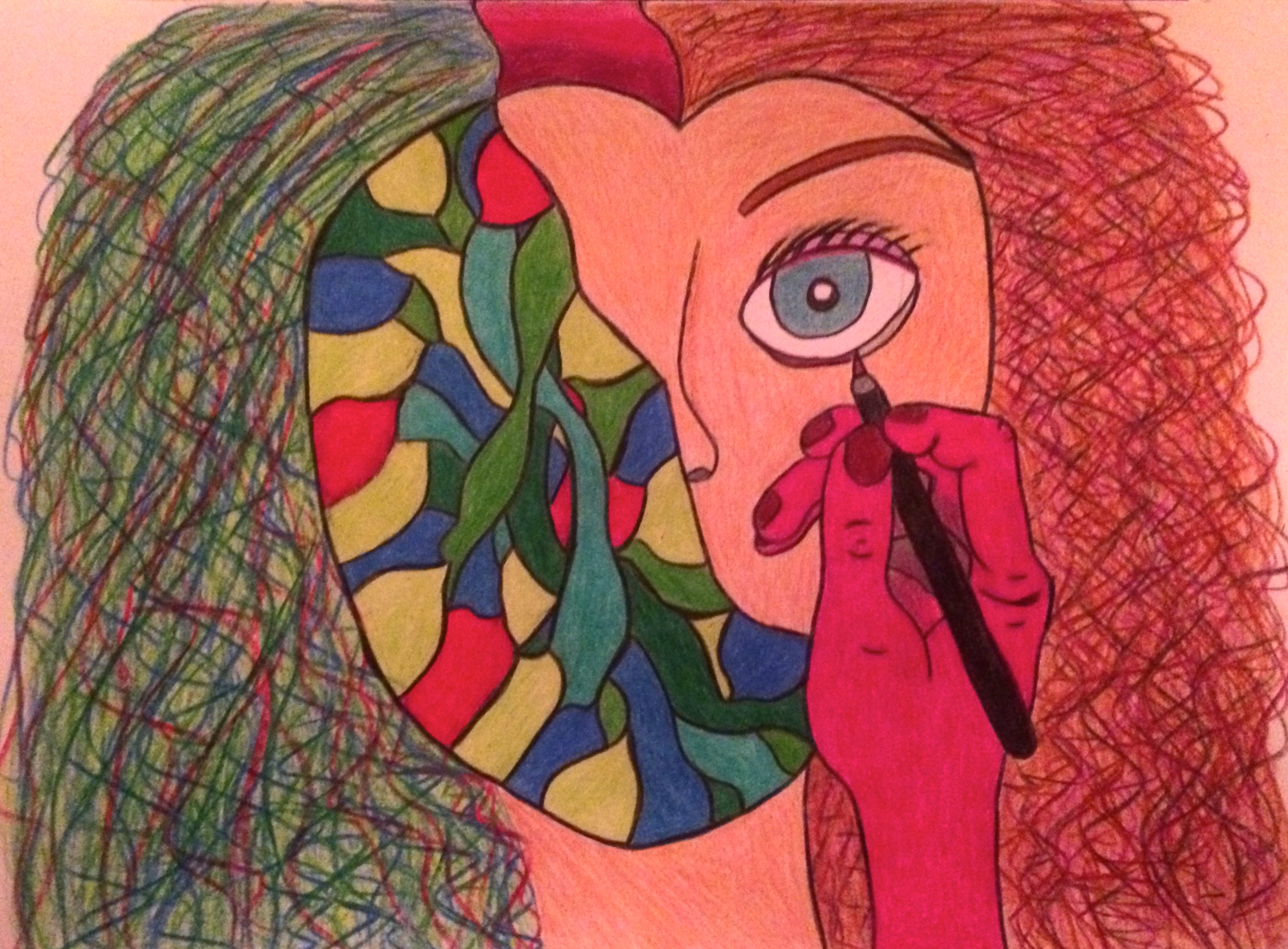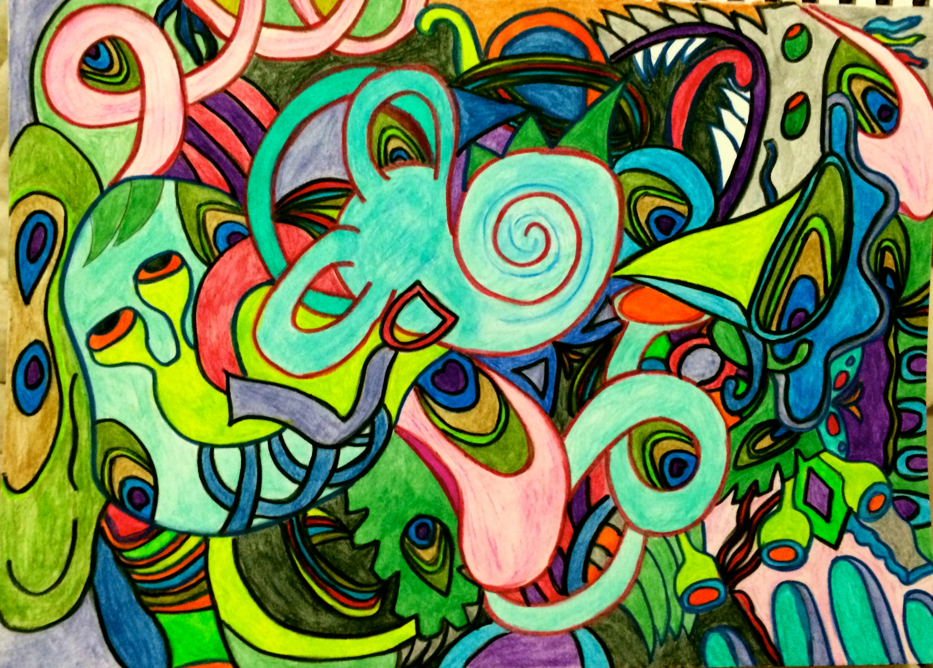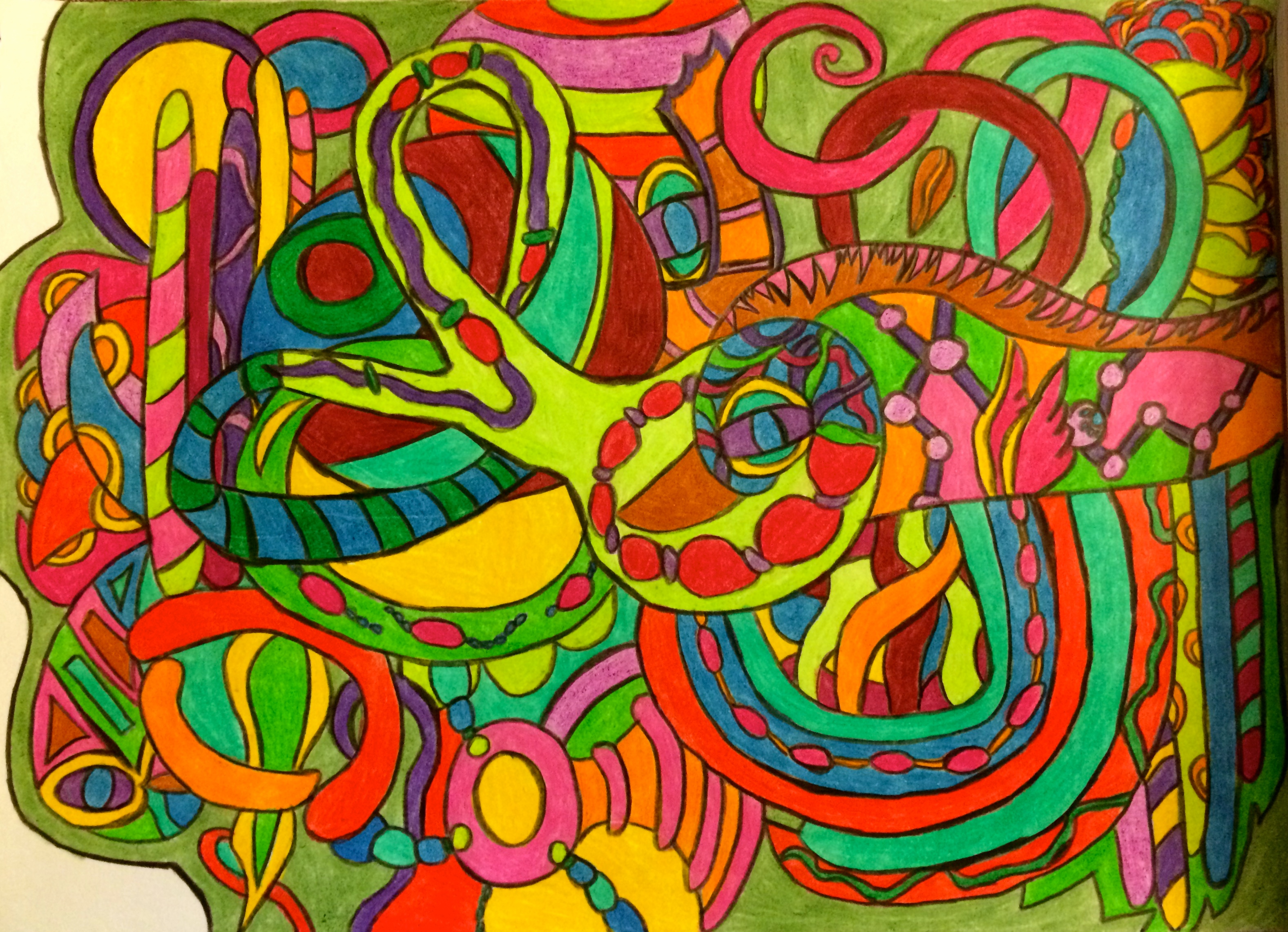 I’ve shared here before that doing art is one of my hobbies and that I planned to share some of my images here eventually. As I’ve experienced more periods of exhaustion from vertigo, I’ve found myself drawing or painting from my bed almost every day. I’m feeling rather inarticulate at the moment, so for the rest of this post I’ll use some of my artwork to assist me in reflecting. For starters, this is what I like to imagine is actually happening inside my ear on days when the tinnitus is particularly loud.