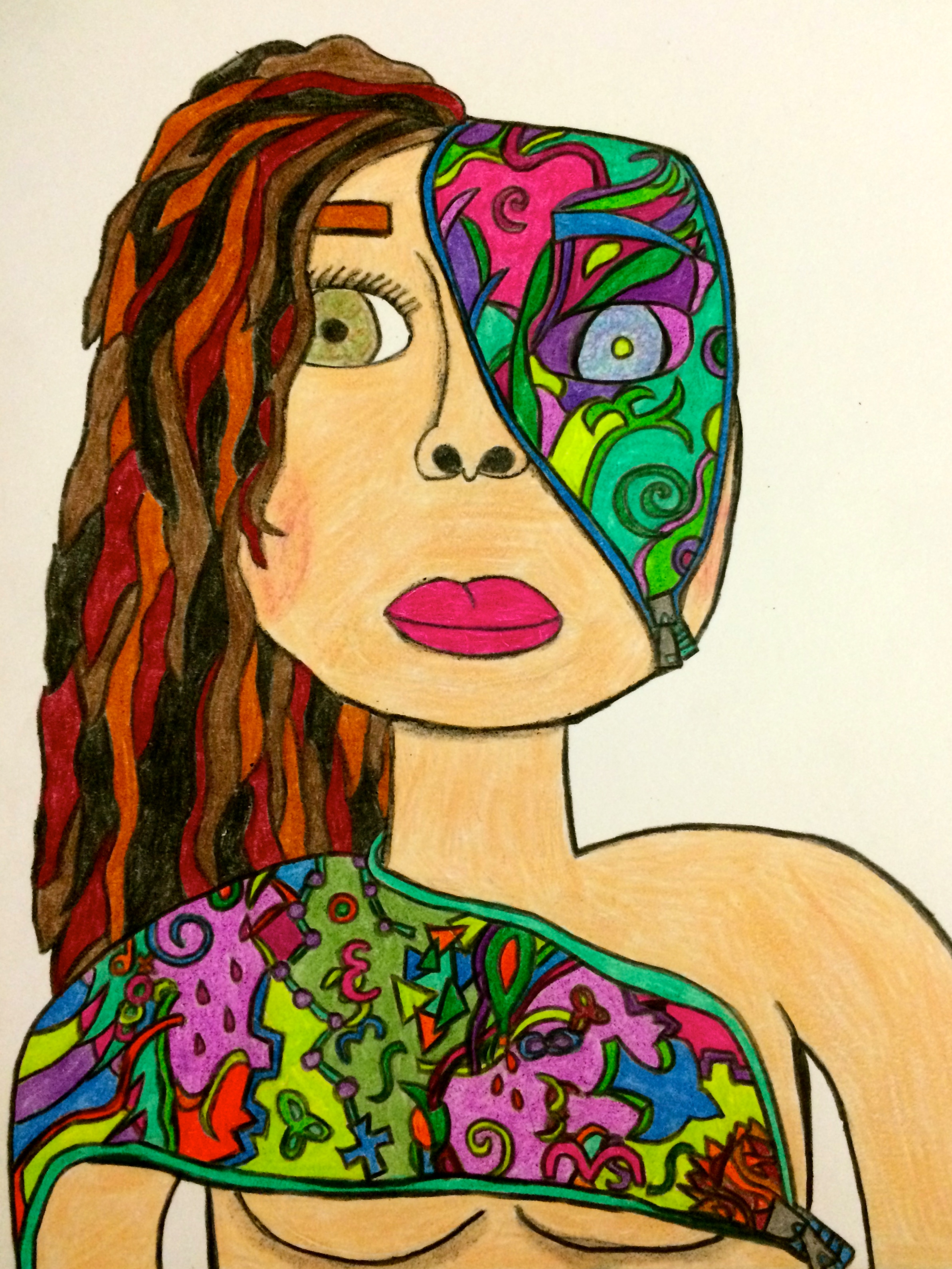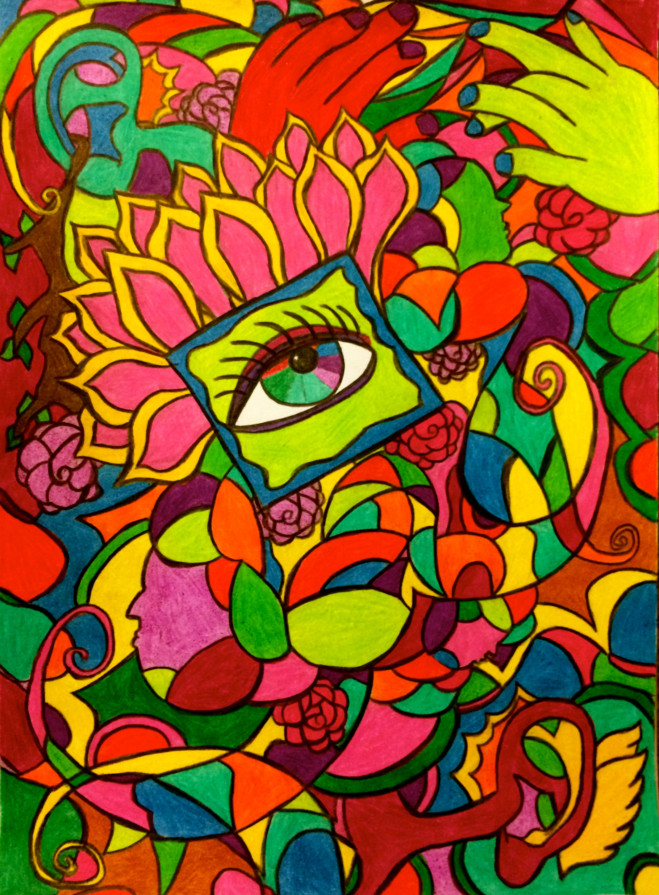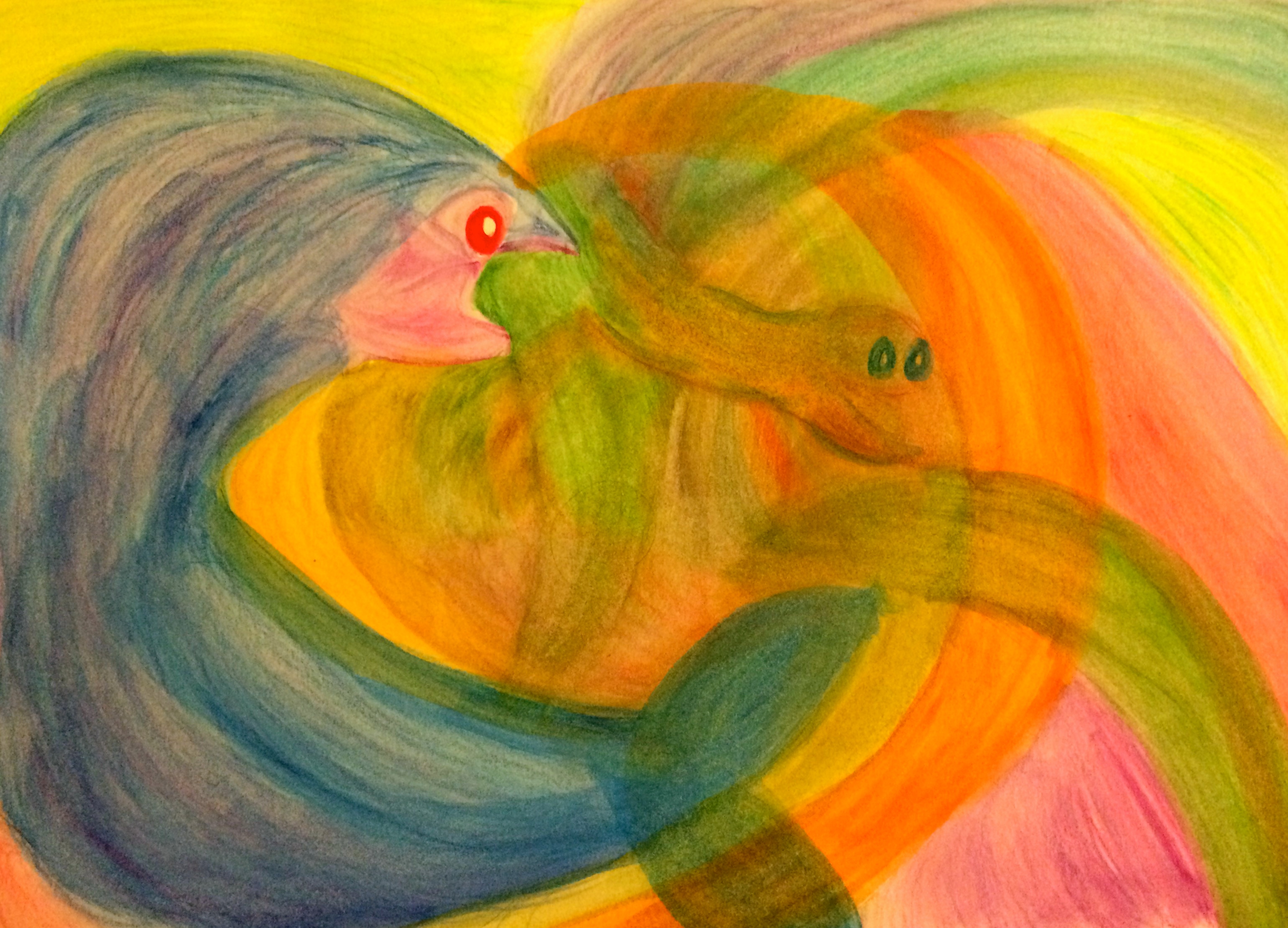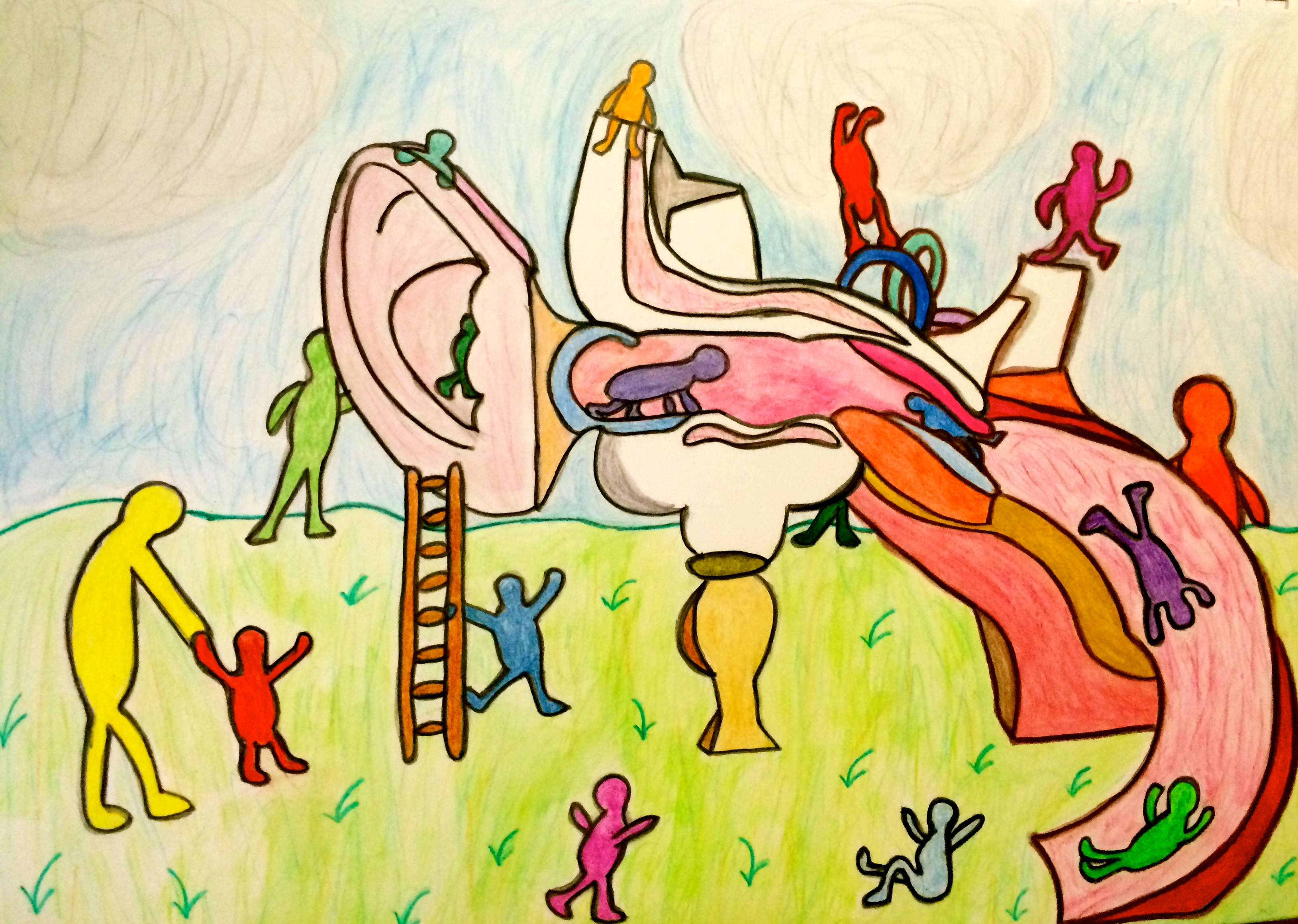I’ve shared here before that doing art is one of my hobbies and that I planned to share some of my images here eventually. As I’ve experienced more periods of exhaustion from vertigo, I’ve found myself drawing or painting from my bed almost every day. I’m feeling rather inarticulate at the moment, so for the rest of this post I’ll use some of my artwork to assist me in reflecting. For starters, this is what I like to imagine is actually happening inside my ear on days when the tinnitus is particularly loud.
